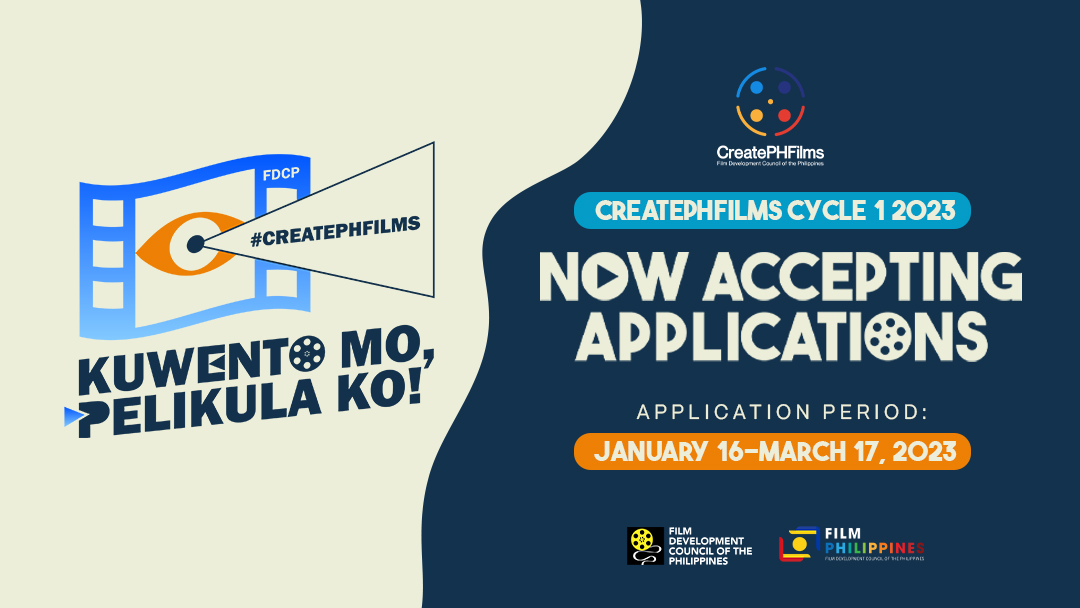 The CreatePHFilms Cycle 1 of 2023 will accept applications until March 17, 2023. To know more about the application process, visit: https://fdcp.ph/programs/createphfilms. For inquiries, send an email to [email protected].