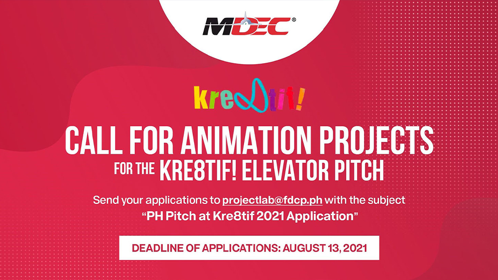 MANILA, PHILIPPINES, AUGUST 10, 2021 — Recognized as the business networking platform for the digital content industry in Malaysia and across Southeast Asia, the 12th Kre8tif! Conference and Content Festival, through the Film Development Council of the Philippines (FDCP), is holding a Call for Animation Projects to the Kre8tif! Elevator Pitch.