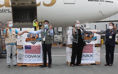 Earlier on Monday, an Emirates plane carrying a total of 924,300 Pfizer Covid-19 vaccine doses landed at the NAIA Terminal 3 at 4 p.m, completing the US donation of 1.8 million doses coursed through the COVAX Facility. (PNA)