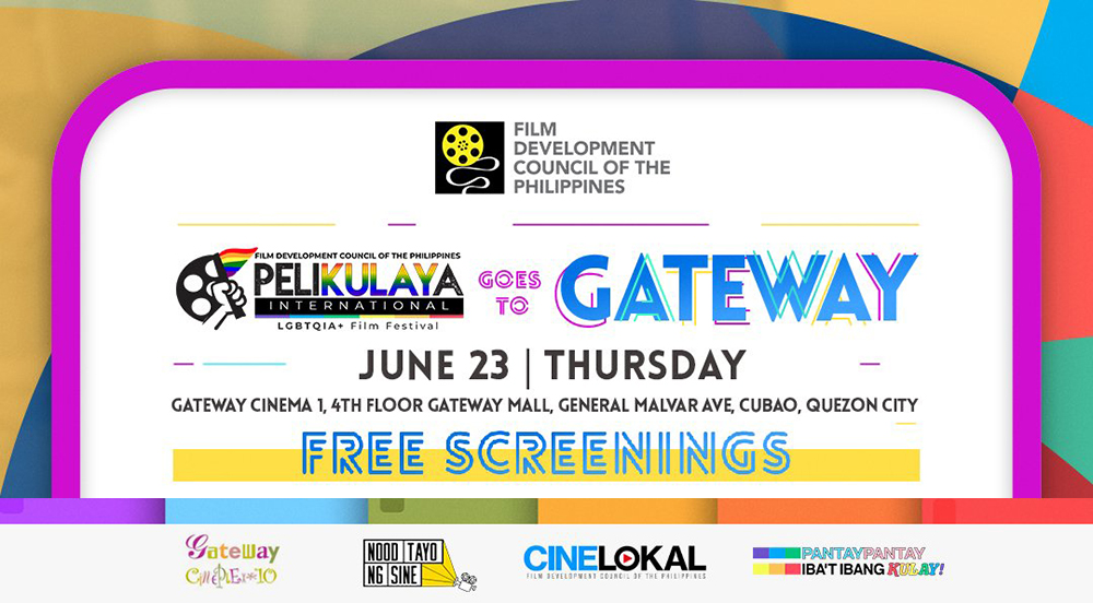 MANILA, PHILIPPINES, JUNE 23, 2022 — The PeliKULAYa International LGBTQIA+ Film Festival of the Film Development Council of the Philippines (FDCP) is holding free screenings of LGBTQIA+-themed feature and short films on June 23 and 25 in Gateway Cinema, Gateway Cinema 1, 4th Floor Gateway Mall, General Malvar Ave, Cubao, Quezon City.