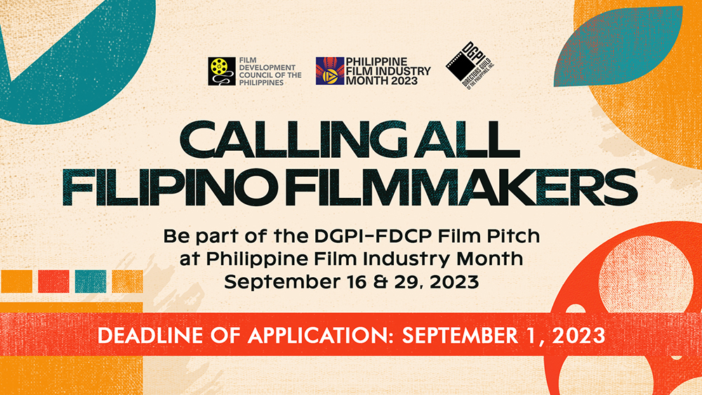 MANILA, PHILIPPINES, 29 AUGUST 2023 To create opportunities for filmmakers to collaborate with industry leaders and financiers for the development of their film projects, the Directors’ Guild of the Philippines, Inc. (DGPI) partners with the Film Development Council of the Philippines (FDCP) for the DGPI-FDCP Film Pitch, which will be held on September 16 and 29 during the celebration of the Philippine Film Industry Month (PFIM).